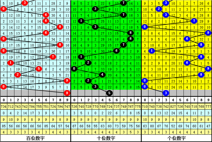 号码个数分析:历史上排列三第012期同期奖号中,号码0-9出现个数分别为:号码2开出2个,号码7、8、9开出5个,号码1、3、4、5开出7个,号码6开出8个,号码0开出13个,今年第012期排除号码6。